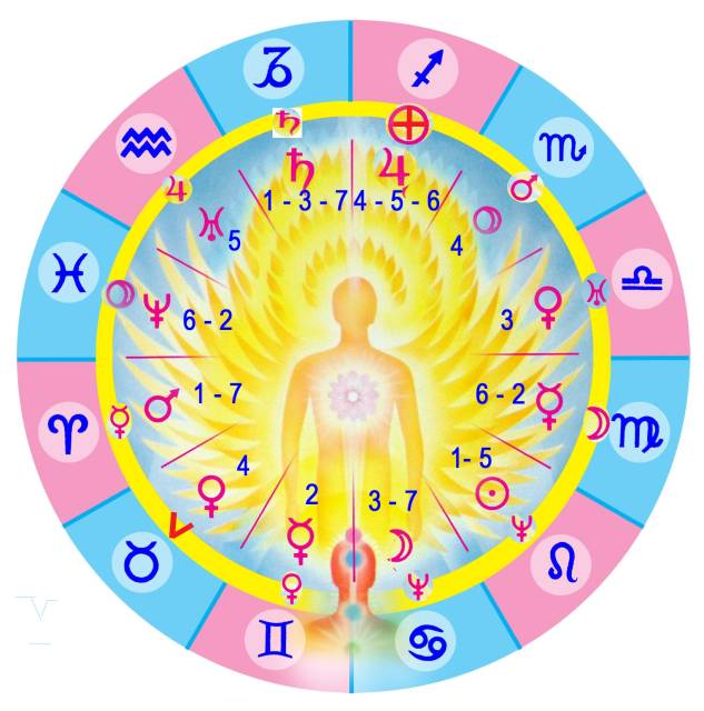 De 12 tegn i relation til indre legemer og De Syv Stråler